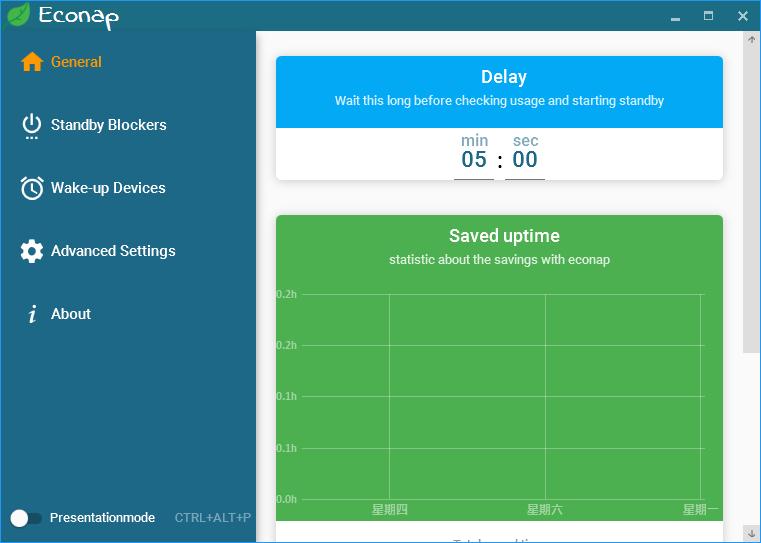 Stand-Bye是一款旨在帮助节省能源的软件,对个人用户免费开放部分的功能,它会每隔一段时间检测系统的资源占用情况,根据用户的资源阈值设定来决定是否让计算机进入睡眠。