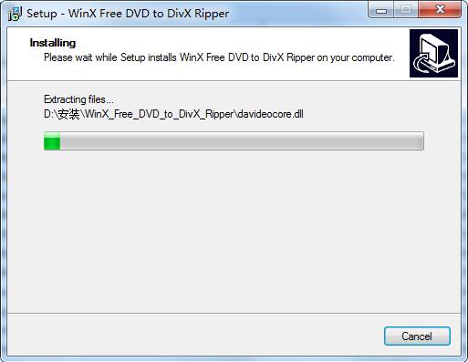 WinX Free DVD to DivX Ripper最新版正在安装,耐心等待一下。