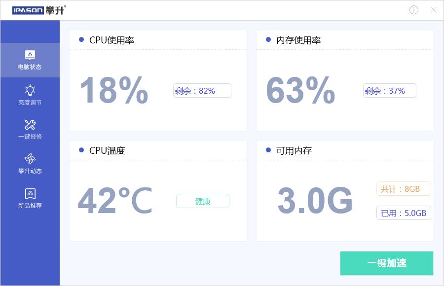 攀升报修客户端是一款知名免费系统工具软件,免费提供电脑信息查看、问题一件报修、一键加速优化清理内存、攀升最新动态查看以及攀升新品阅览等功能,致力于更好的服务于用户。
