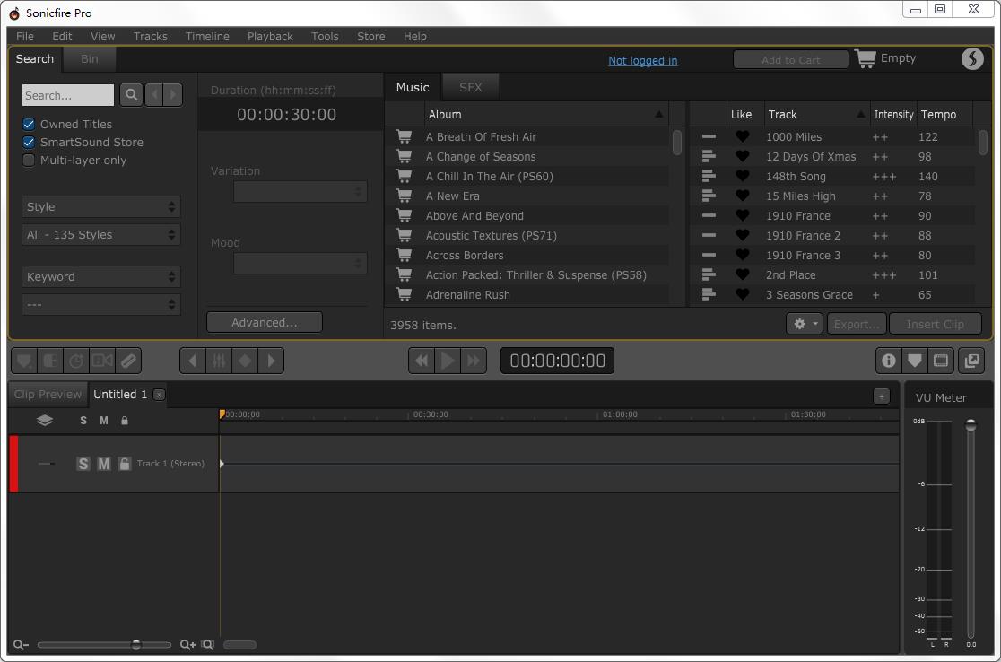 SmartSound SonicFire Pro是一款配乐软件,拥有简单的操作界面,适合非专业人士,支持时间控制,自定义长度,裁剪音频等,上手非常快速,有需要可以下载。