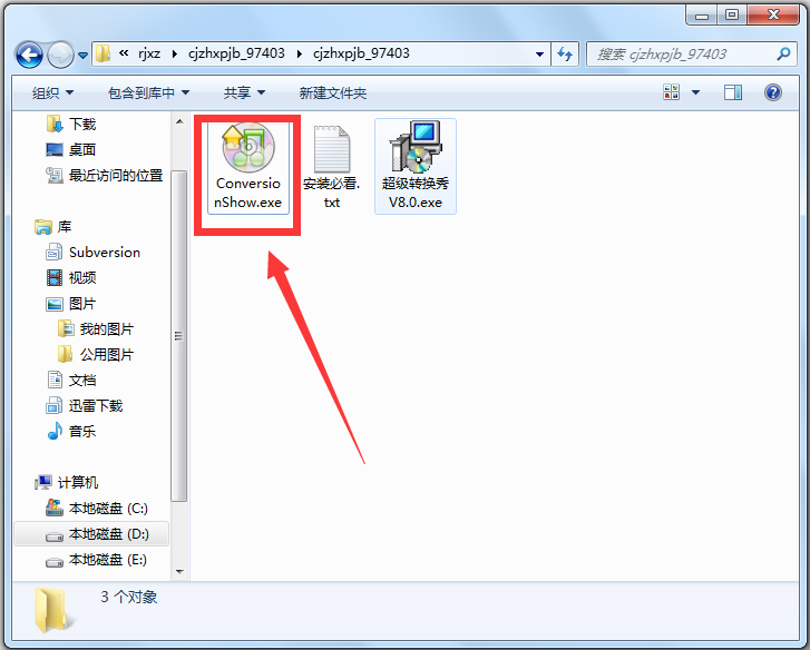 2、安装完毕之后,先不要启动软件,将压缩包内的“ConversionShow.exe”文件辅助到超级转换秀安装根目录下,选择替换