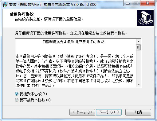 2、双击超级转换秀 V8.0.exe开始安装,勾选同意条款;