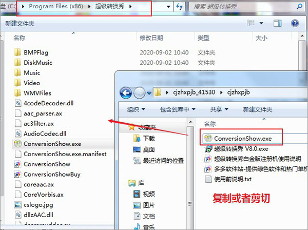 5、找到之前解压好的文件,将里面的破解补丁ConversionShow.exe,复制或者替换到软件安装目录;
