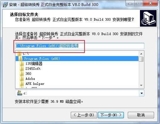 3、默认安装目录【C:Program Files (x86)超级转换秀】,依提示继续安装;