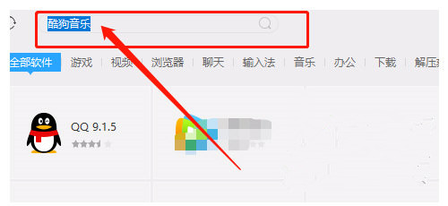 二、在软件管理界面中,在上面的搜索框中,输入要搜索的关键词,编辑器以“酷狗音乐”为例。