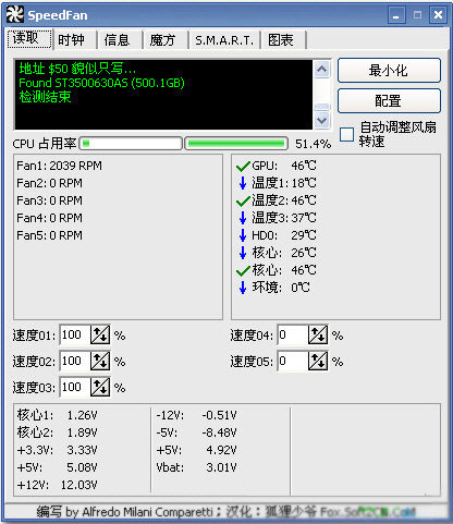 虽说大部分主板都对CPU风扇有自动调节功能,然而主板自带的调速功能往往不尽人意,比如依然觉得噪声很大,或者希望能在玩游戏时开启风扇,不玩游戏时关闭风扇等。这时候就可以使用SPEEDFAN这个软件来对CPU风扇进行更加个性化的控制。至于使用SPEEDFAN控制CPU风扇时候是否需要开启主板bios里的风扇自动控制功能,我也不是很确定,反正我是关了的。