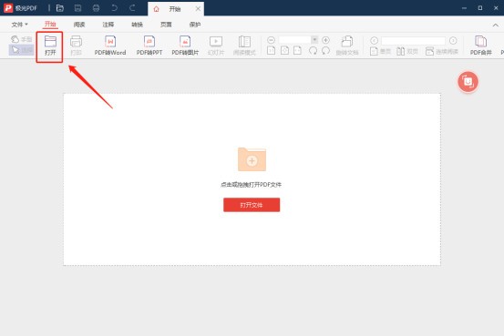 打开极光PDF阅读器,点击首页左上角的“打开”,进入需要打开的pdf文件存放位置。