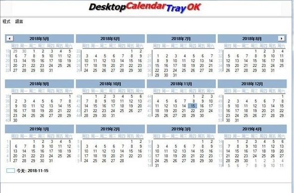 DesktopCalendarTrayOK(桌面日历)是一款十分不错的桌面日历工具。只需要下载就可以用了而且是免安装的,更加方便快捷,自带了特定时间计算功能,让你知道到下个节假日还有几天,需要的小伙伴们还等什么呢,快来下载吧。