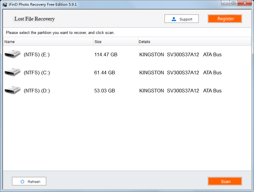 如果查找照片恢复,请从外部硬盘驱动器、内部硬盘驱动器、数码相机、存储卡、SD卡、CF卡、U盘/闪存驱动器中恢复丢失的照片。