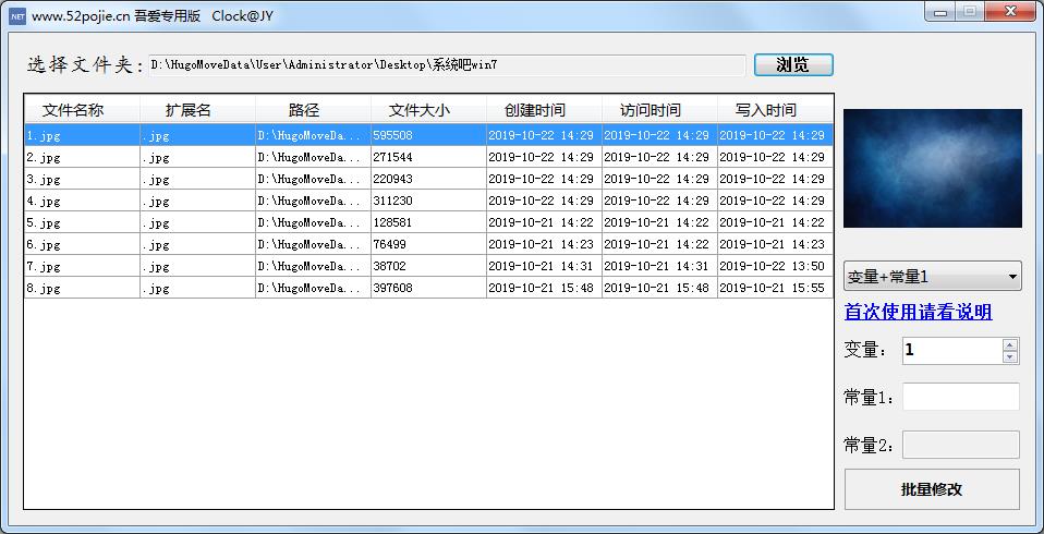 这是一款完全免费的批量修改文件名工具,无需安装,双击即可使用,简单小巧实用,支持所有格式文件,支持自定义文件名和文件扩展名,可以使用数字或大小写字母序列来指定命名规则,替换特定的字符或短语,并将文件特有的信息插入每个新文件名,改名过程还能够自动解决文件命名冲突。