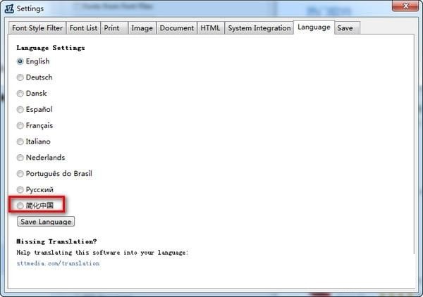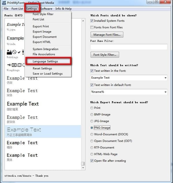 1、Print My Fonts打开后,默认是英文的,但是可以设置为简体中文。