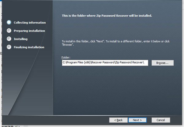 2、双击zip-password-recover-for-Win.exe运行安装程序,选择安装位置,点击next。