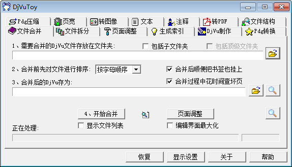 文件合并:将散页DjVu文件合并成一个多页DjVu。