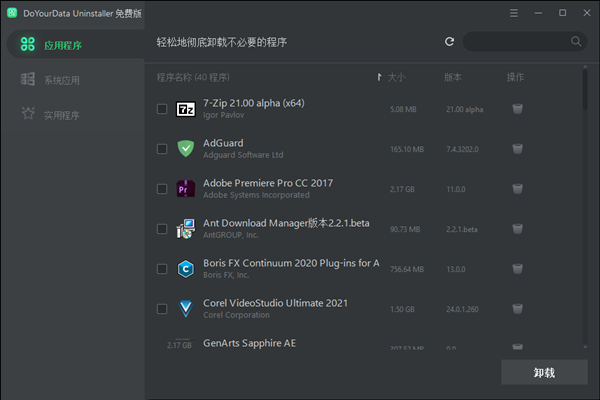 它允许你逐个或批量地卸载程序。您只需要选择要卸载的程序,就可以通过几次单击来帮助您完全卸载它们。