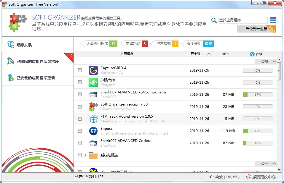 Soft Organizer是一款高级的软件卸载工具,它可监视应用程序的安装过程中对系统的更改,也就是安装前后进行扫描,进行对比,保存记录,卸载时按照更改进行卸载,还是比较彻底的。当然,在使用中造成的更改是没有被监控的,也就没法还原的。