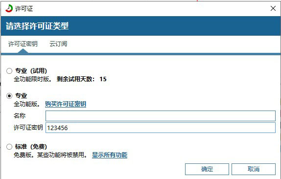 4、现在打开软件,点击注册,选择专业版,输入任意名称和许可秘钥即可直接激活。