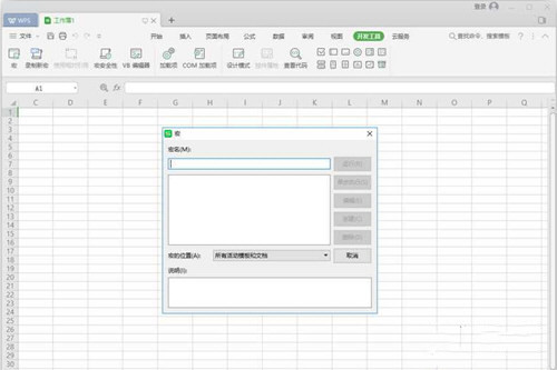 3、打开WPS2019,新建表格,点击开发者工具,此时的宏不再是灰色。