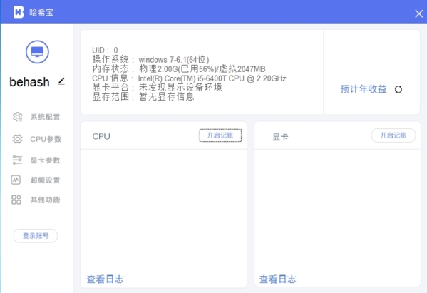解压哈希宝压缩包,打开并登录账号即可开始记账运算,单账户无设备上线,若区分设备则修改机器名。