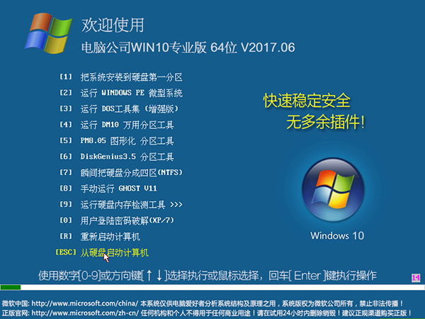 win10专业版下载 电脑公司Win10 64位专业版V201706