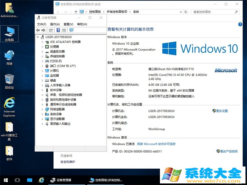 蒲公英 Ghost Win10 x64 装机版201710 已激活