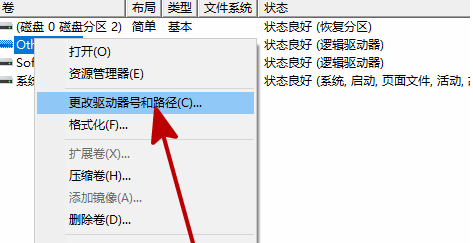 3、在磁盘管理找到和我们所安装硬盘名字一样但是无法打开硬盘,右键此硬盘,弹出的列表中找到更换更改驱动器号和路径。