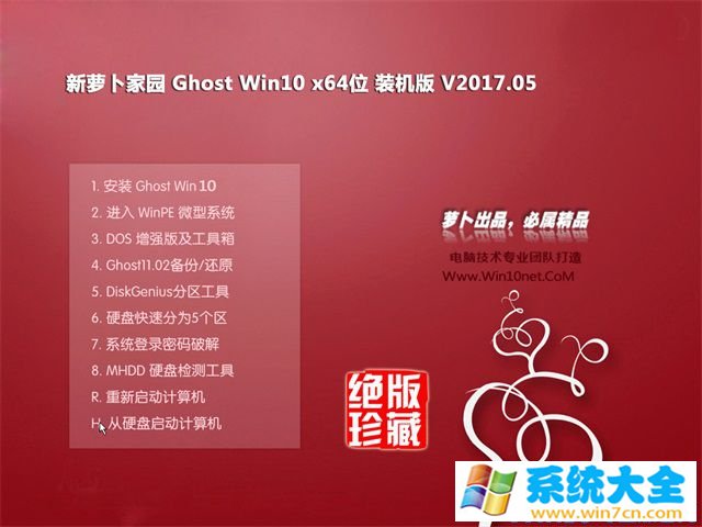新萝卜家园Win10x64位装机版警告 1、新萝卜家园Win10x64位完全是个人兴趣爱好,禁止任何机构及个人将此系统作为商业用途! 2、禁止修改并盗用他人名义在网上传播! 3、本系统仅供电脑