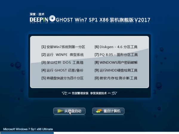 深度技术 GHOST WIN7 SP1 x86 通用版 2017