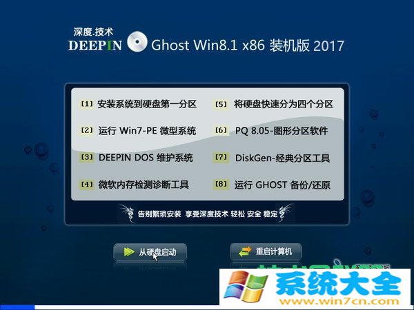 深度系统WIN 8.1x32位系统仅用于进行演示基于万能GHOST的快速部署技术,供装机维护技术人员参考,我们不承担任何技术及版权问题,且不对任何资源负法律责任。所有资源请在下载后24小时内删除。如果您觉得满意,请购买正版!!!