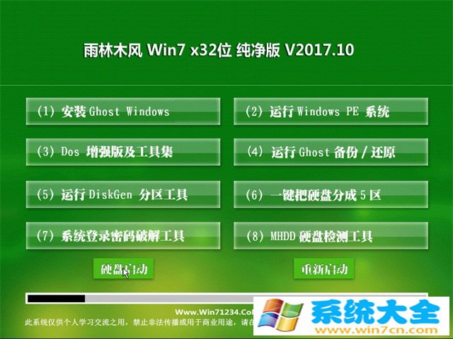 雨林木风GHOST Win7x32位纯净版V2017.10版本安装维护方便快速 -集成常见硬件驱动,智能识别+预解压技术,雨林木风GHOST Win7x32位纯净版绝大多数硬件可以快速自动安装相应的驱动。雨林木风