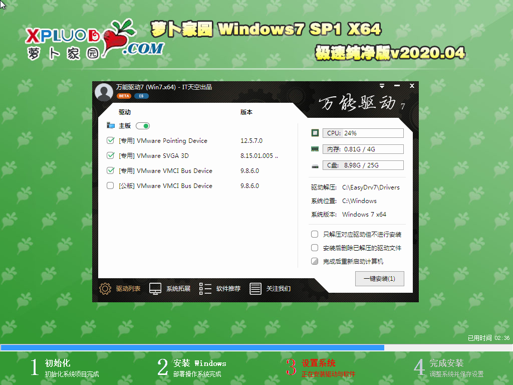 2萝卜家园 Ghost Win7 32位 万能装机版 V2023